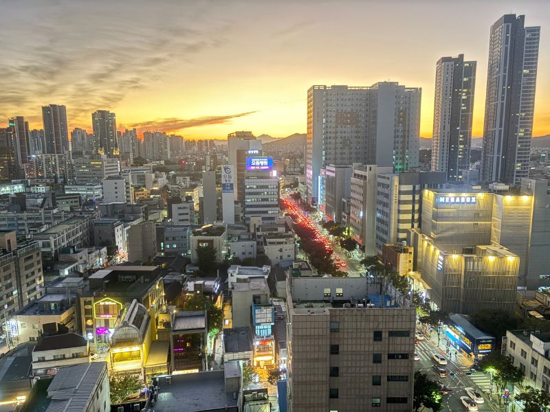 Tiendas, cafés y ambiente urbano que contrastan con los templos y parques que visitamos. Perfecto para dar un paseo relajado o hacer compras antes de salir hacia Haeinsa.