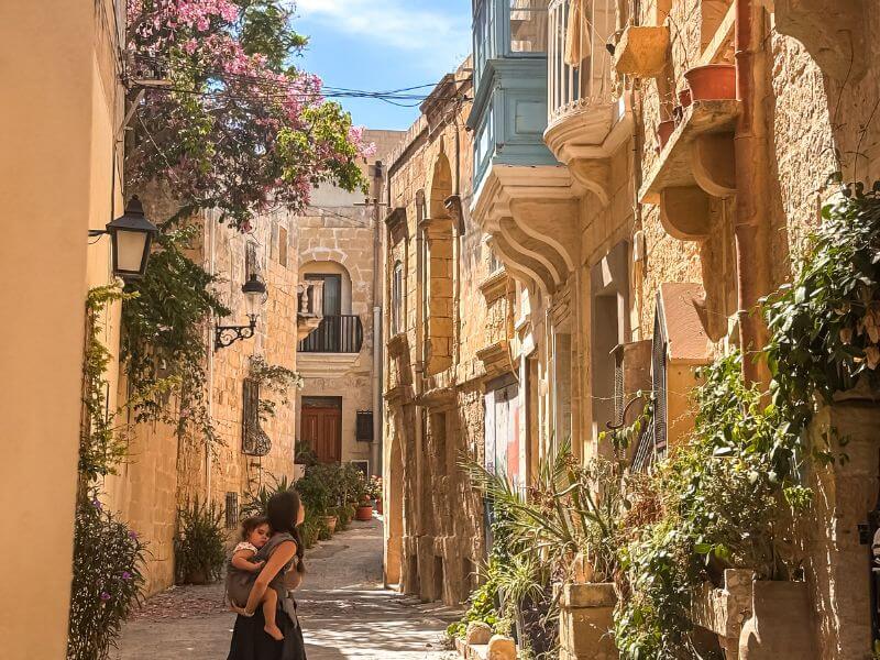 Tanto Mdina como Rabat son lugares tranquilos y cómodos para visitar con niños. Nara disfrutó caminando por las calles sin coches, persiguiendo gatos y probando un helado artesanal mientras nosotros nos dejábamos llevar por el ritmo pausado del lugar.